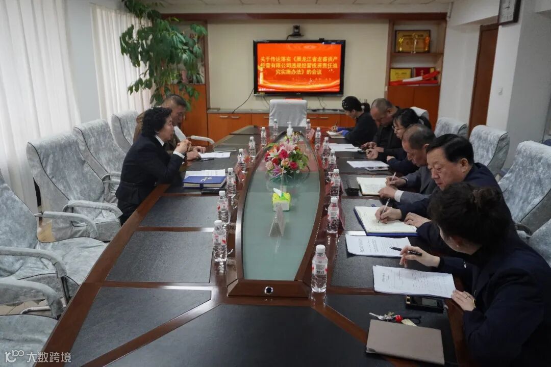 为深入贯彻落实国有资产监管要求,规范企业经营投资行为,防范经营投资风险,切实筑牢合规经营防线,4月3日上午,外贸集团召开专题会议,传达落实龙睿公司印发的《黑龙江省龙睿资产经营有限公司违规经营投资责任追究实施办法》(以下简称《实施办法》)。集团党委副书记、工会主席李轩出席会议,集团党委委员、纪委书记李天苗主持会议。法务风控部、财务中心、经营管理部、党委工作部、综合办公室等相关部室负责人参会。
