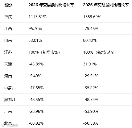 补充:江西省交易量同比下滑 79.45%,仅靠高单价实现交易额正向增长,走量能力出现显著收缩。