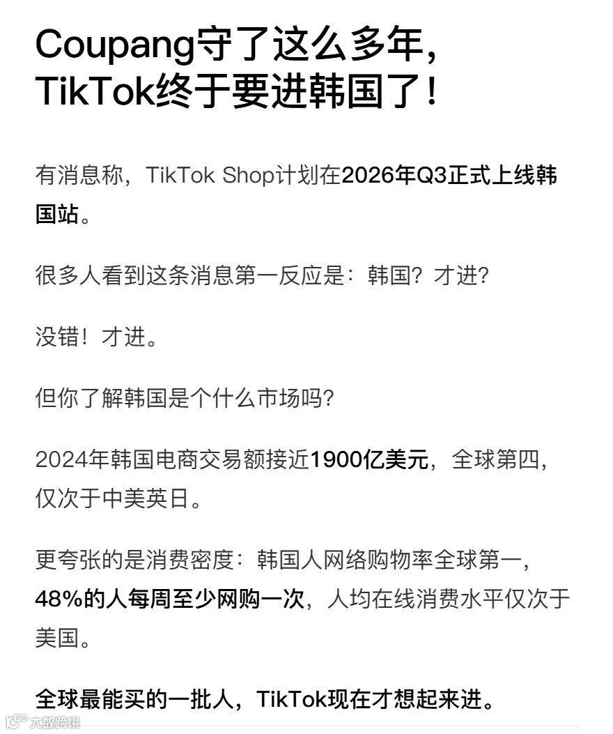 因为这类卖家对平台节奏、短视频带货逻辑、达人合作、内容转化链路已经有经验,一旦韩国开放,往往比纯新手反应更快。