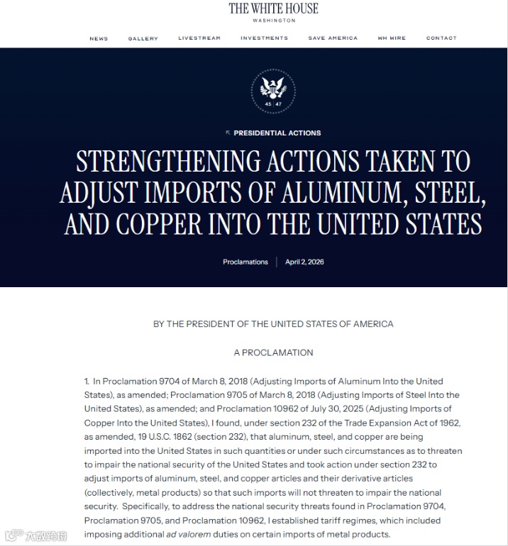 2026.4.6:232 金属关税新规生效
