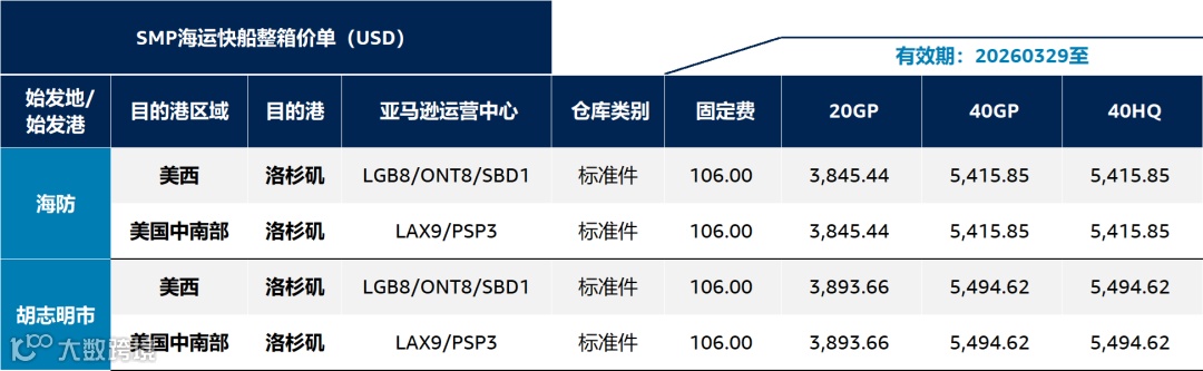 亚马逊全球物流分仓优选海运普船价卡