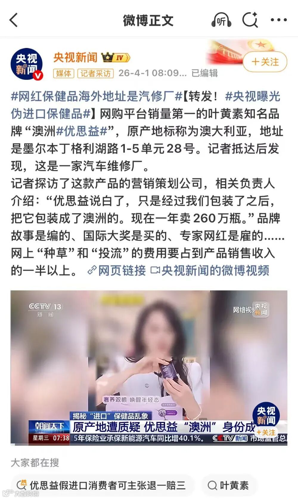 愚人节央视深度调查揭露网红保健品"澳洲优思益"造假真相。