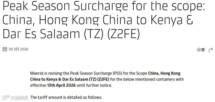 2026年4月13日起生效。非现货订舱按价格计算日核算,PSS不适用于现货订舱。