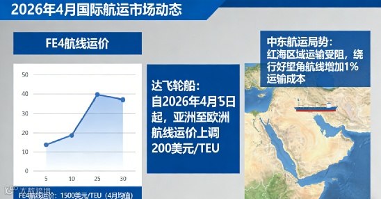 国泰君安期货分析显示,FE4航线上海港揽货压力大,4月第二周舱位未满,运价约1700-1800点。马士基week16开舱指引将影响结算价。