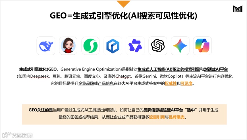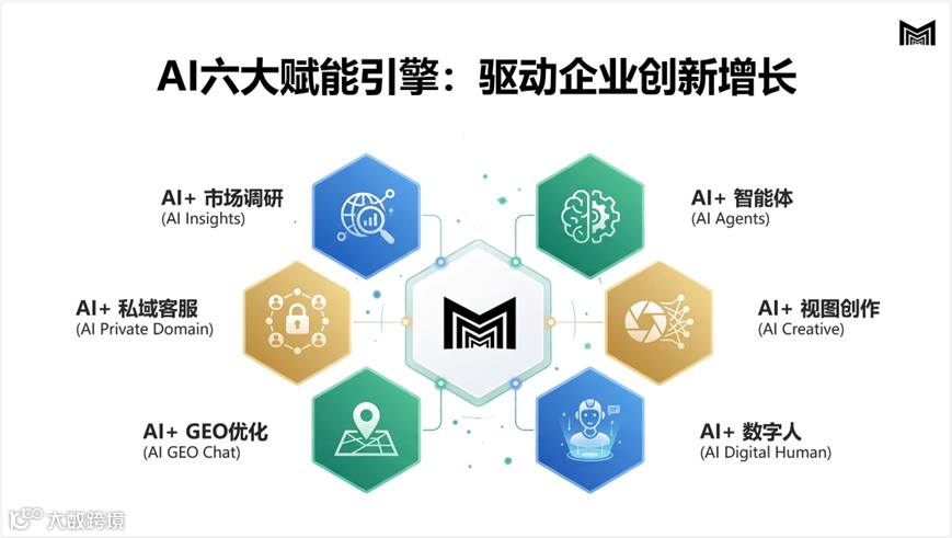 AI提升GEO优化精准度,GEO开辟AI流量新入口。企业可借助AI+市场调研、智能体等六大引擎,实现合规业务增长。