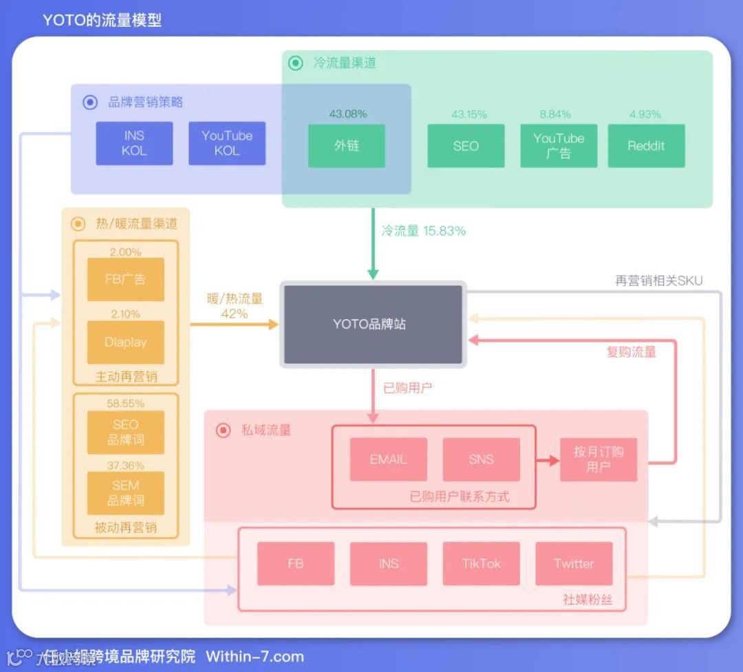 YOTO的流量模型很完整,主动营销、被动营销、长期策略、短期策略,统统都有。(但凡到了销售额破亿美金的体量,流量模型能不完整吗?)