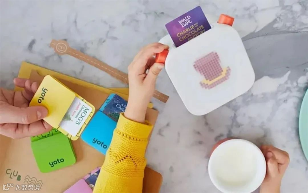 YOTO 创立于2015年,是一个专为儿童设计的无屏幕智能音箱(smart speaker的儿童版本)。通过插入不同的卡片,YOTO、 可以播放音乐、有声书、播客等音频内容,此外还具有闹钟、蓝牙、以及一个像素显示器。