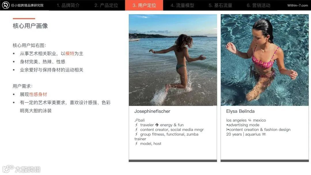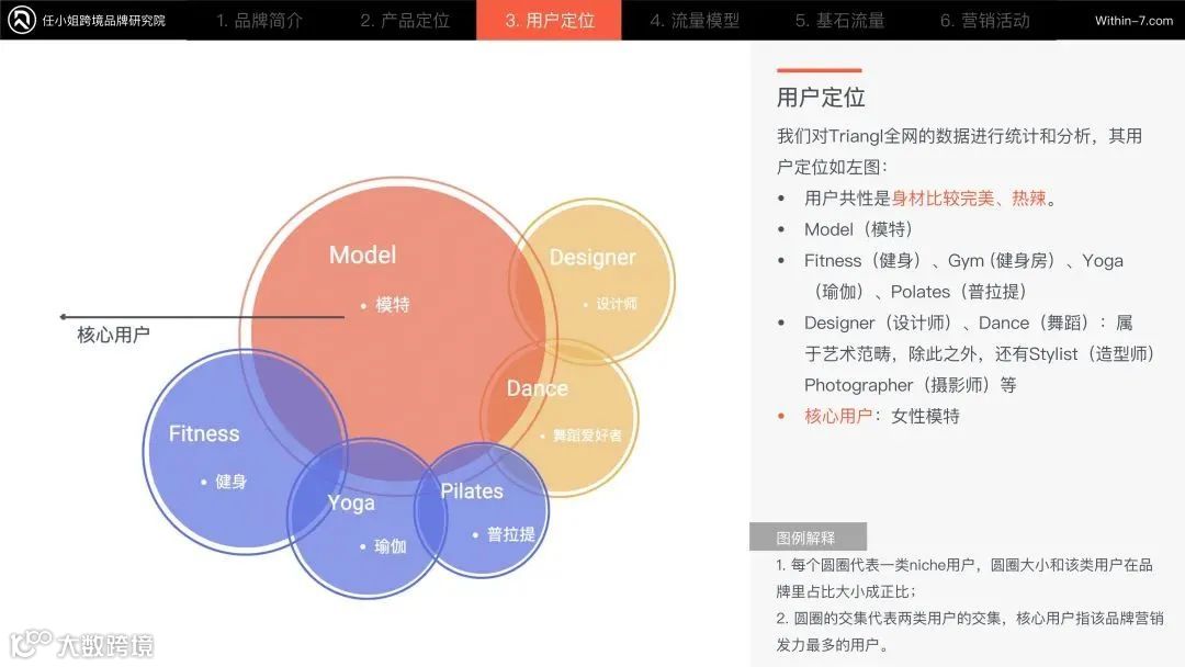 用户共性是身材非常的完美和热辣。她们这类人群喜欢健身、瑜伽和普拉提,对身材管理比较严格。