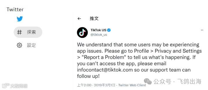 TikTok官方客服团队在Twitter设有专门账号@TikTokSupport。您可以关注该账号并通过私信或公开回复提出问题,通常客服会在24小时内回复。