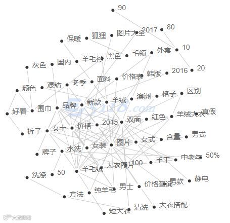 通过以上图谱和分析,我们知道和“羊毛大衣”搭配的用户需求有哪些,于是我们就可以将这些词和羊毛大衣一起放入到磁流体项目的关键词设置中进行监控: