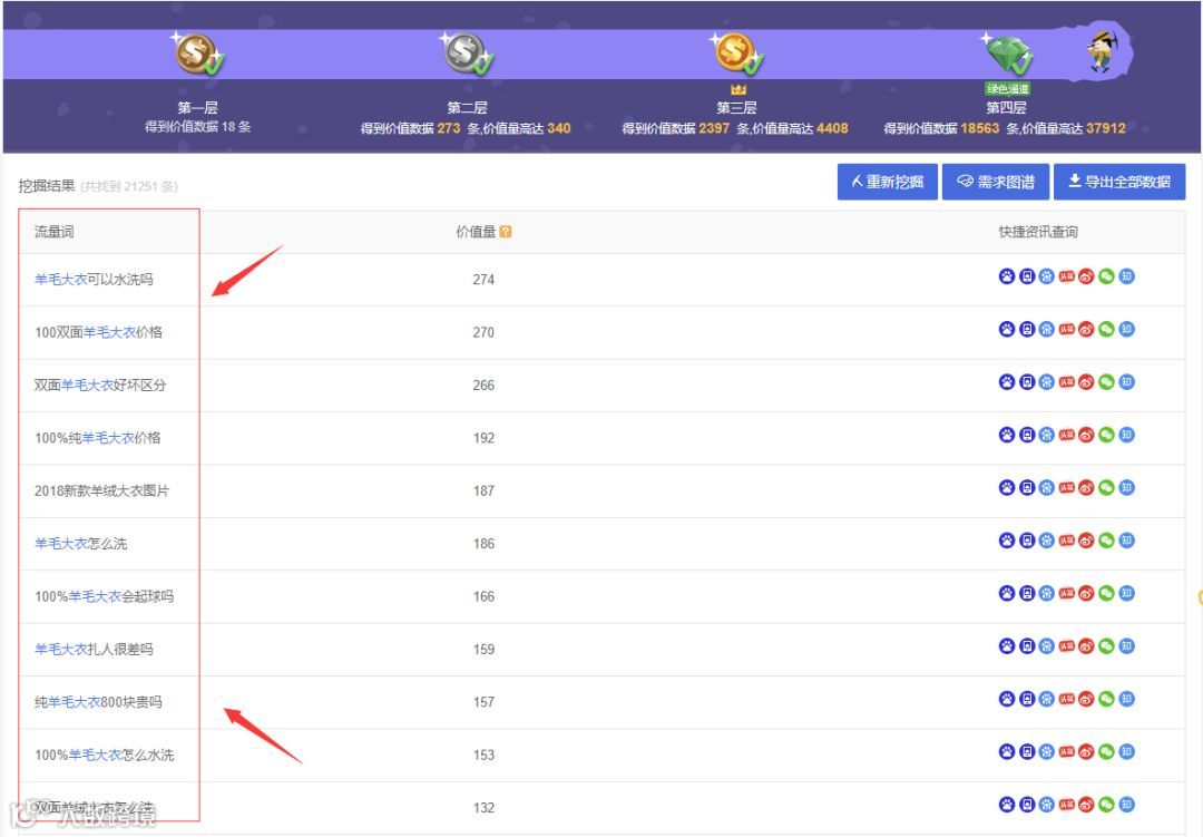 例如 “羊毛大衣” 的内容监控设置,关键词设置的灵感就来自于以下网址: