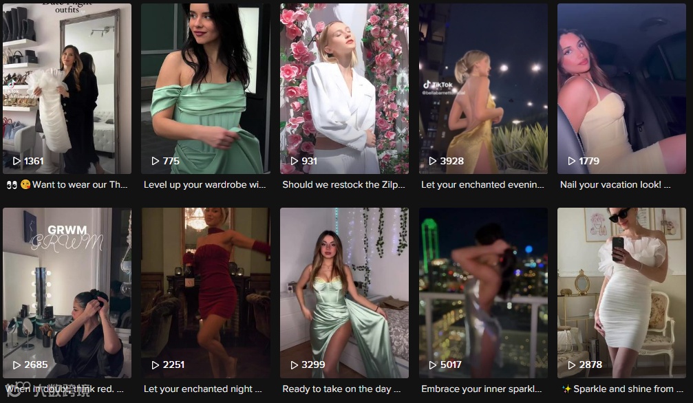 ②:真人实拍,展现时尚、自信形象。下面两条短视频素材通过真人实拍的方式来展示服装试穿的效果,增加趣味性的同时展现了女性追求时尚、自信的形象,也符合品牌宣扬的“鼓励女性为自己代言”的价值观。素材投放的效果来看,该两条短视频预估曝光量均突破了300万。