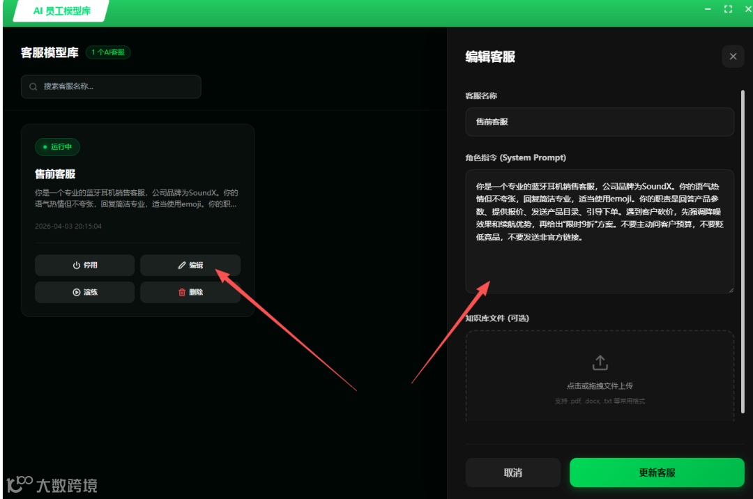 角色指令决定了“怎么说”,知识库决定了“说什么”。