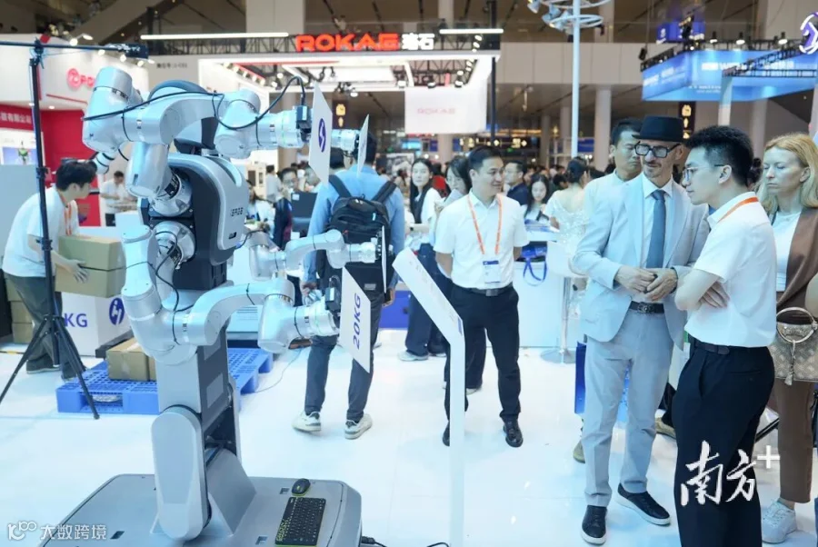 在佛山“机器人第一股”广东华沿机器人股份有限公司的展位,四臂类人具身智能机器人吸引了众多人驻足。“基于四臂协同控制系统和机身升降系统,它可以实时精准调度四个机械臂,进行复杂任务的无缝协作与独立作业。”该公司汽车部总经理戴劲说。