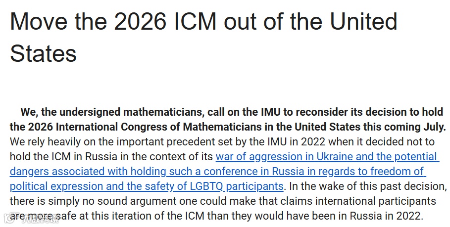 国际数学联盟(IMU)于3月30日回应称,尽管承认安全担忧,仍坚持线下举办,强调国际合作挑战下实体会议具有特殊意义。但请愿书指出,在40余国警告背景下,此决定显失责任。