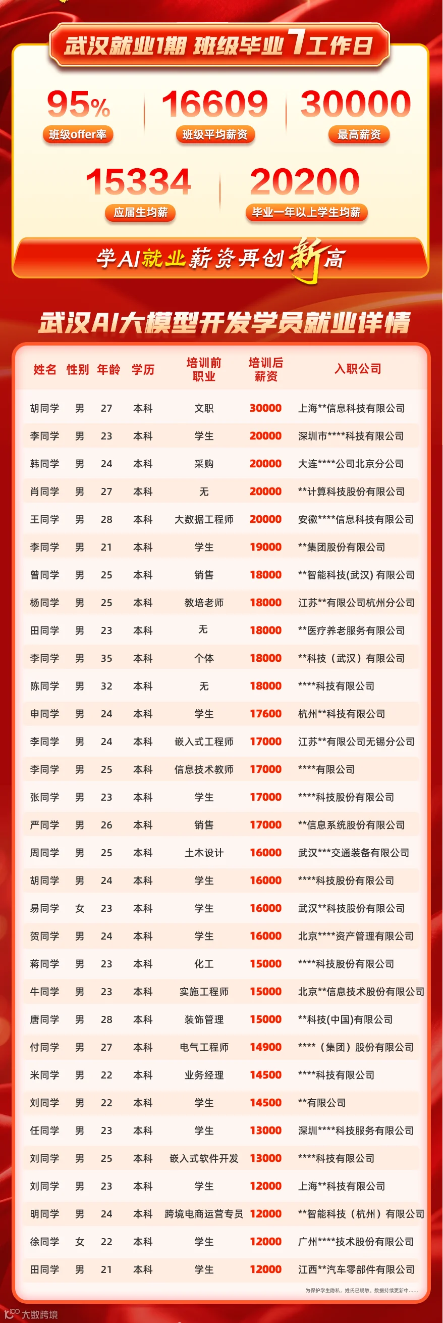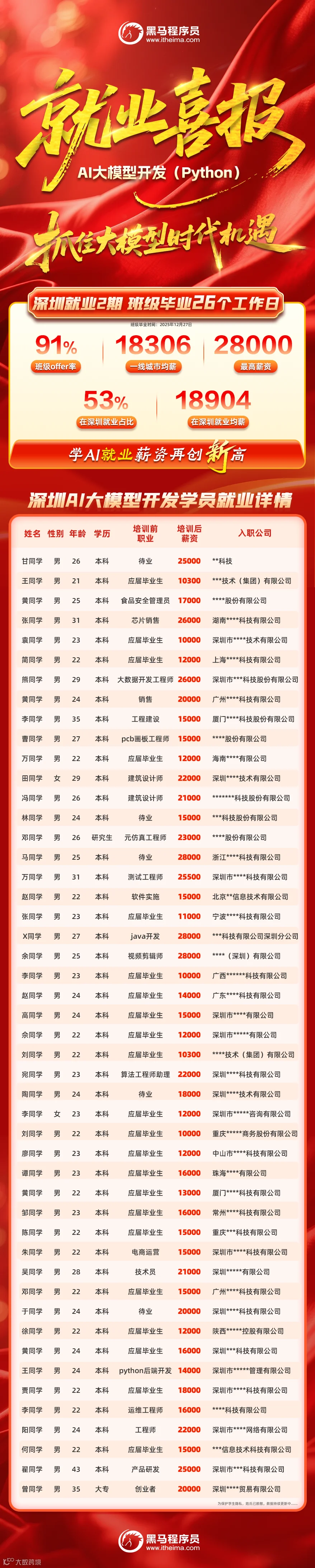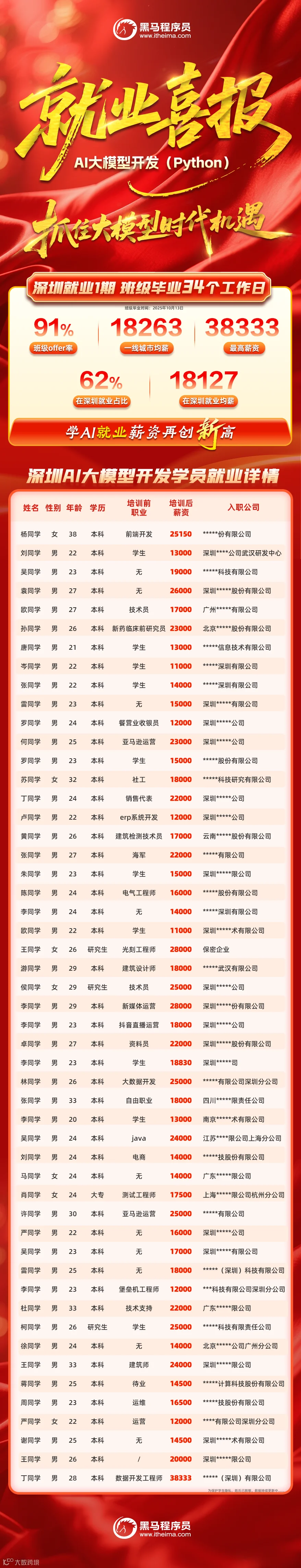 现在,黑马深圳AI大模型开发(Python)1期、2期又接连传来就业好消息:就业快、就业率高、薪资超高!