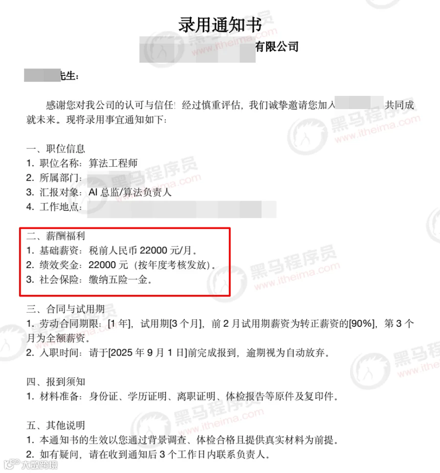 通过黑马学员的真实就业成绩,大家应该能明显感觉到,AI开发人才越来越吃香~