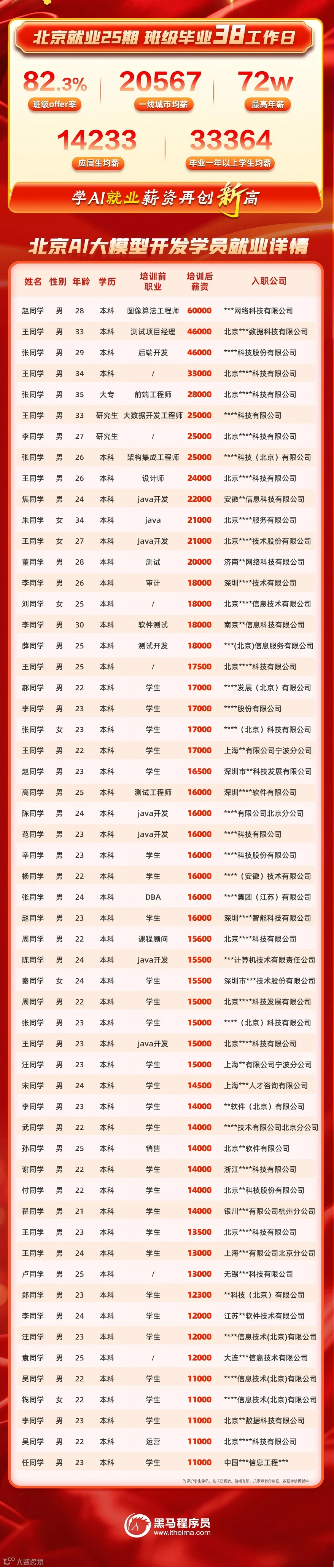 黑马北京25期:一线城市均薪20567元,最高年薪72w,再创新高!