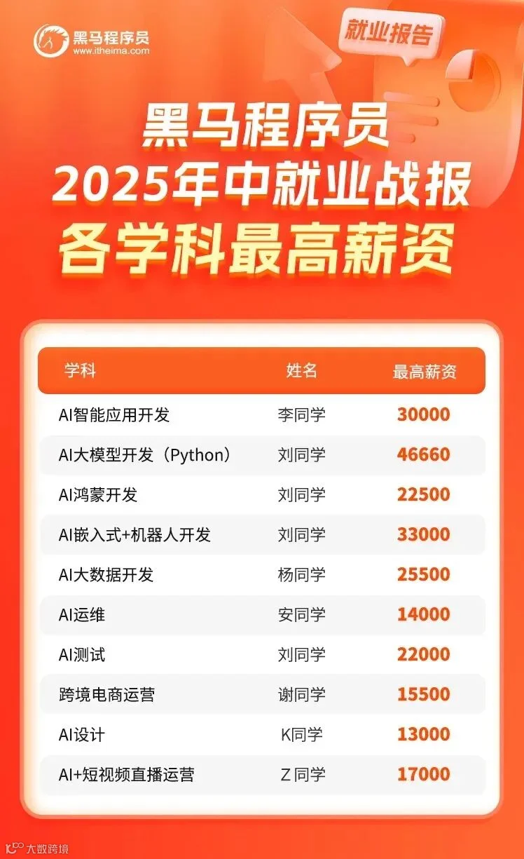 * 黑马热门10余大学科,总有一门适合你,如果不知道自己适合哪一个,文末扫码添加老师,一对一指导哦