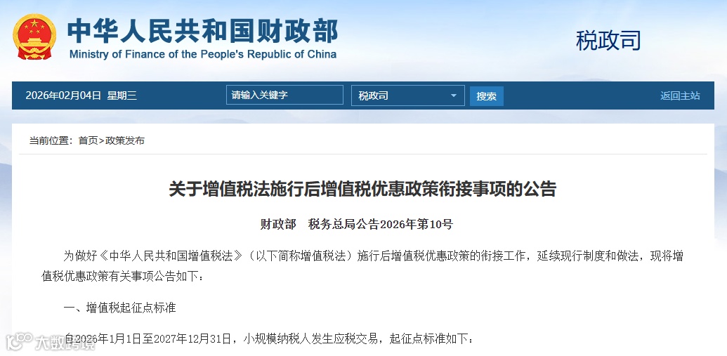 2026年1月31日,财政部、税务总局联合发布《关于增值税法施行后增值税优惠政策衔接事项的公告》(财政部 税务总局公告 2026年第10号)。其中明确,自2026年1月1日至2027年12月31日,多项农业生产相关项目将继续享受免征增值税政策。这一政策延续了国家对农业生产的支持力度,为农资行业从业者提供了明确的税收指引。