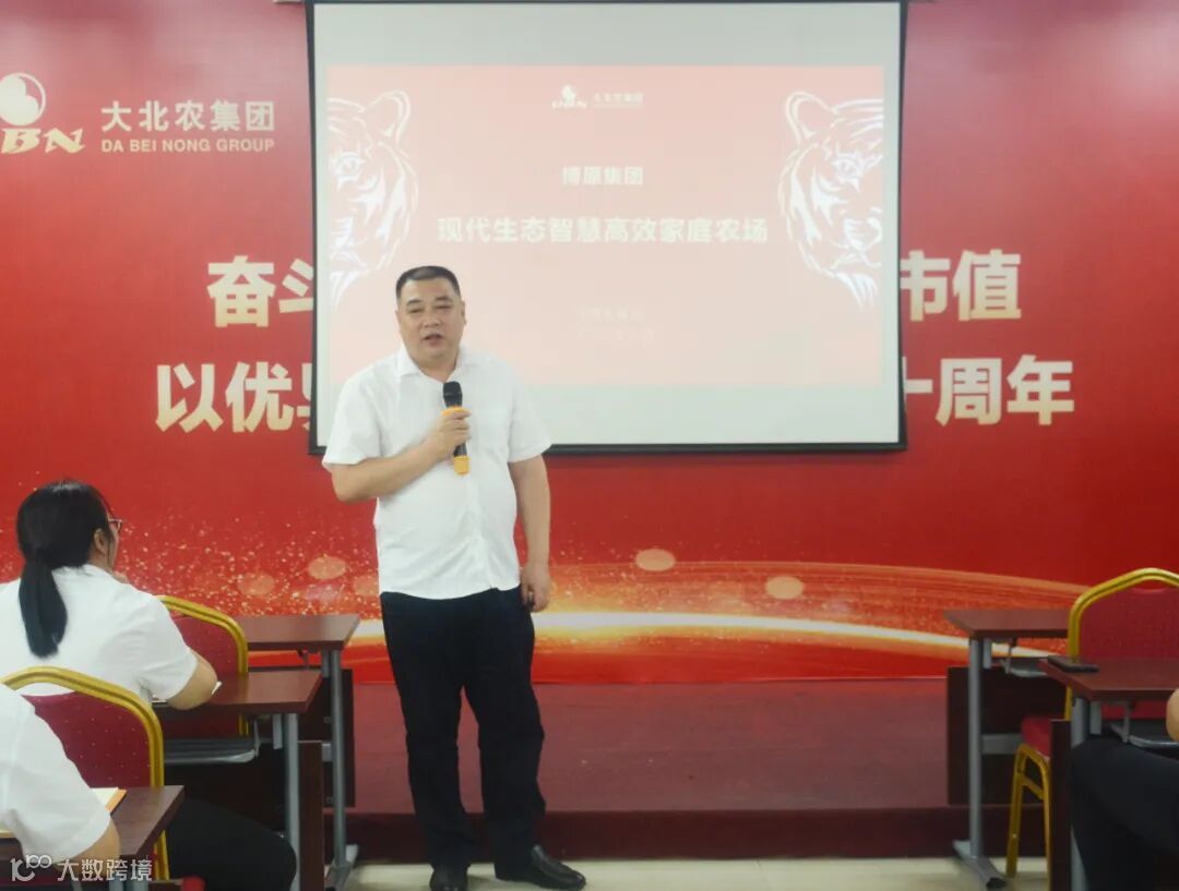 大北农集团常务副总裁 博原集团总裁徐老师以《联合发展 创造新辉煌》为题,带领全体战将深刻解读邵博士讲话精神,对河南畜牧业基本情况进行说明,详细讲解农场到餐桌的产业链模型,分析了博原产业链发展重点阶段规划,并对博原集团的发展目标、规划及愿景进行阐述。