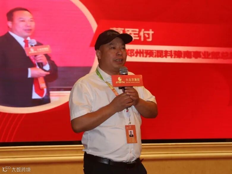 大北农集团饲料动保科技产业大乳猪料推广服务部高级总监金伯池老师以《后非瘟时代母仔猪营养与高效饲养策略》为题,简析行业新形势和新变化,阐述了后非瘟时代母子猪的营养模式,结合当下行情做好高效母猪饲养的策略,提升猪场效益,着重强调了"三高"策略对大乳猪料推广的必要性,全体与会人员纷纷表示抢抓当下新机遇,极致推广,助力河南大发展。