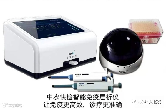 北京中农快检科技有限公司是一家专业快速检测设备供应商,是中国第一家动物疫病快速检测服务平台。智能免疫层析定量分析仪是一台对抗体类、抗原类、真菌毒素类等人工智能检测仪器,对猪、牛、羊、禽的样本等进行检测数据评估,一滴二插三读数,可快速、高效、简捷、准确的提供分析数据。可检测项目有: