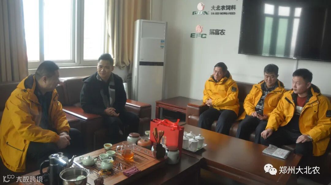 大北农河南区总经理王杰老师与中农快检总经理杨杰就养殖行业发展趋势、产业链合作、极致服务终端养殖场等进行了详细沟通交流,并就充分发挥自身优势、强强联合、共同为终端客户服务达成战略合作共识。河南区市场技术服务体系总监赵书平老师、河南区生产管理中心总监朱克力老师、河南区企划中心总监李云波老师参与此次会谈。