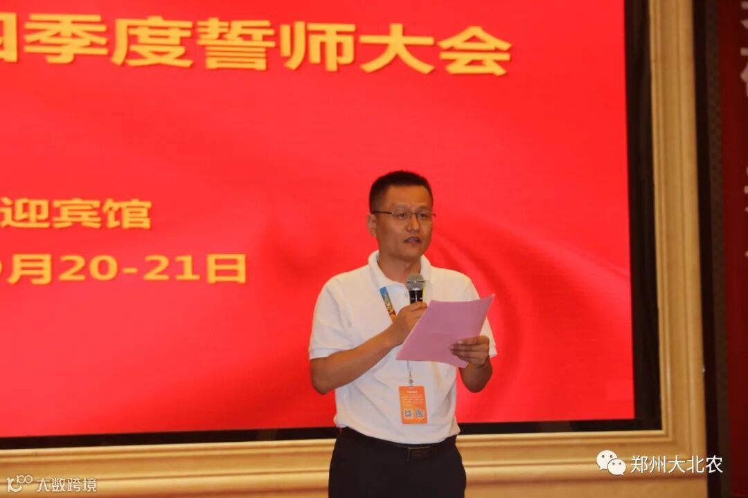 2020年9月20-22日,大北农集团饲料产业河南区以“深入宣贯贵阳会议精神、大干100天 坚决完成2020年绩效目标”为主题的冲刺四季度誓师大会在西平迎宾馆成功召开,河南区干部齐聚一堂,共谋四季度冲刺大计。