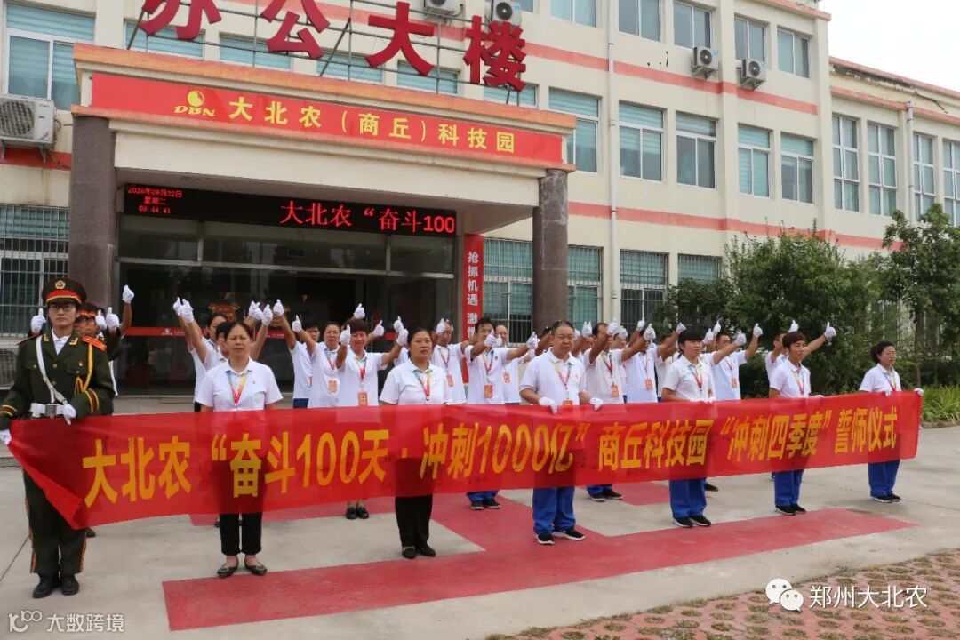 为了进一步激发全员报国兴农的使命感,成就事业的责任感,鼓舞全员以昂扬的斗志投入到第四季度的战斗中,在“营造战斗氛围,全面提升团队战斗力”主题口号的指引下,饲料产业河南区积极落实集团各项要求,9月22日,河南区驻马店科技园、郑州科技园、商丘科技园、南阳科技园同时举行“奋斗100天•冲刺1000亿”河南区“冲刺四季度”誓师仪式。