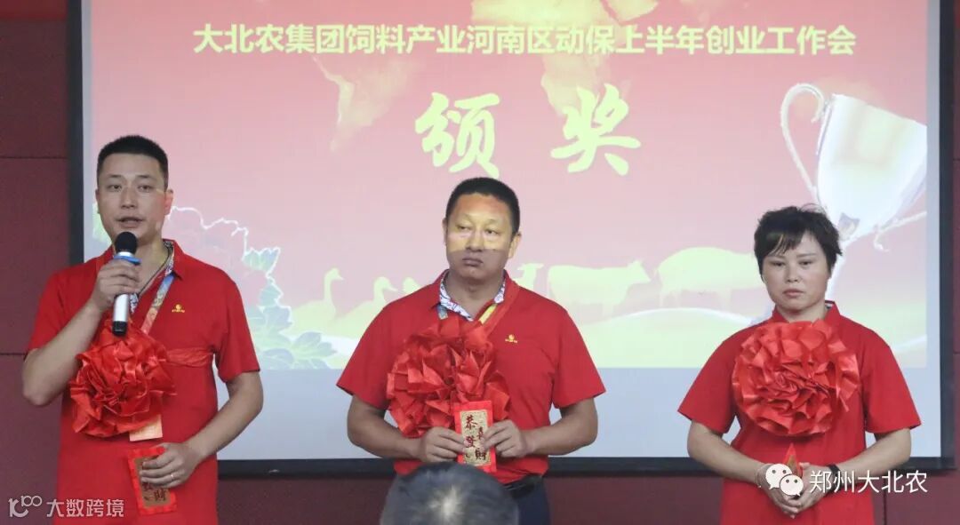 饲料产业河南区郑州动保事业部总经理李永阁老师致开奖词,大北农饲料产业动保技术服务部总监葛代兴老师为上半年表现优异的员工进行了颁奖。