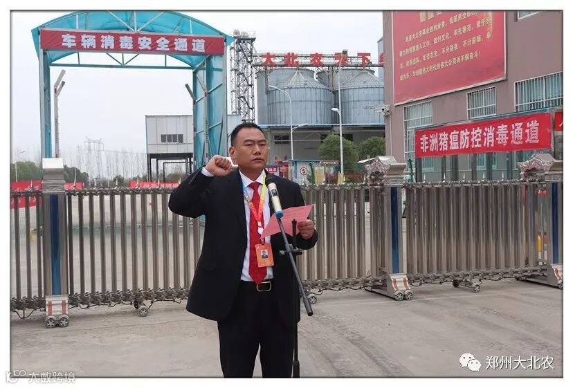 南阳大北农大客户服务部总经理丁玉龙老师、南阳大北农生产部经理张永占老师分别做为代表发言,表示坚决严格遵守各项防控制度,为打赢非洲猪瘟防控攻坚战及实现既定目标做出最大努力!