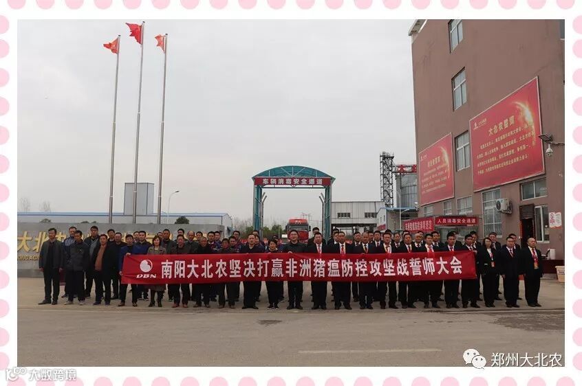 3月22日,南阳大北农坚决打赢非洲猪瘟防控攻坚战誓师大会隆重举行。河南区总经理王杰老师、河南区财务中心总监张兵老师、河南区采购中心总监卢伟老师等同南阳大北农业务及生产后勤老师一起参加了此次活动。