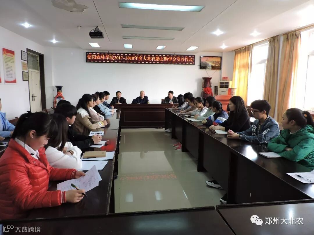 2018年3月13日下午,信阳农林学院2017-2018年度大北农励志助学金发放仪式在牧医工程学院会议室举行。