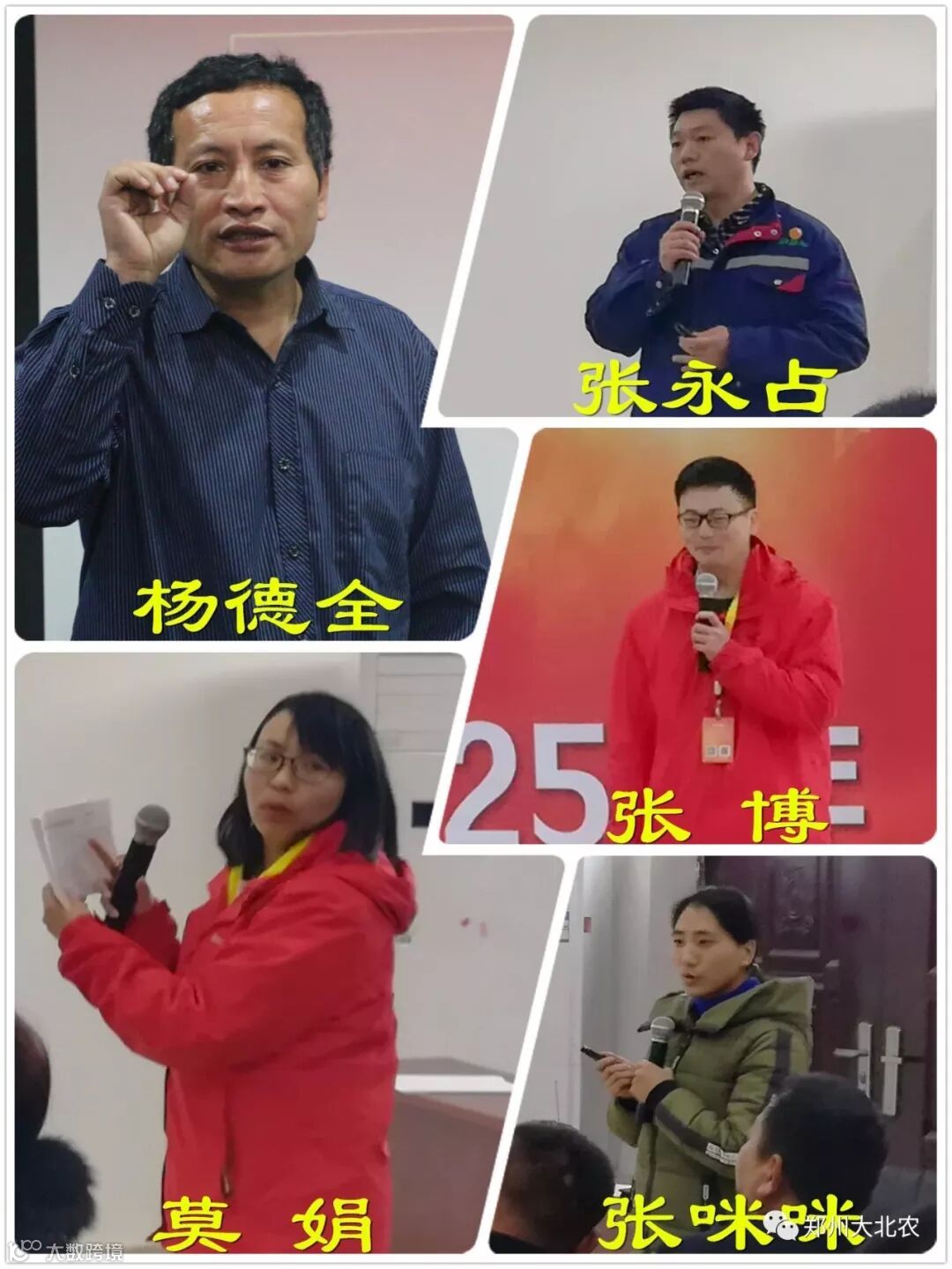 南阳大北农市场技术服务体系总监杨德全老师、南阳大北农财务部经理莫娟老师、南阳大北农生产部经理张永占老师、南阳技术品管部经理张博老师、南阳大北农营销服务中心主管张咪咪老师为大家进行培训讲解,分别从各自的体系、部门的工作性质为大家讲解公司的规章制度、产品产品和技术服务等。