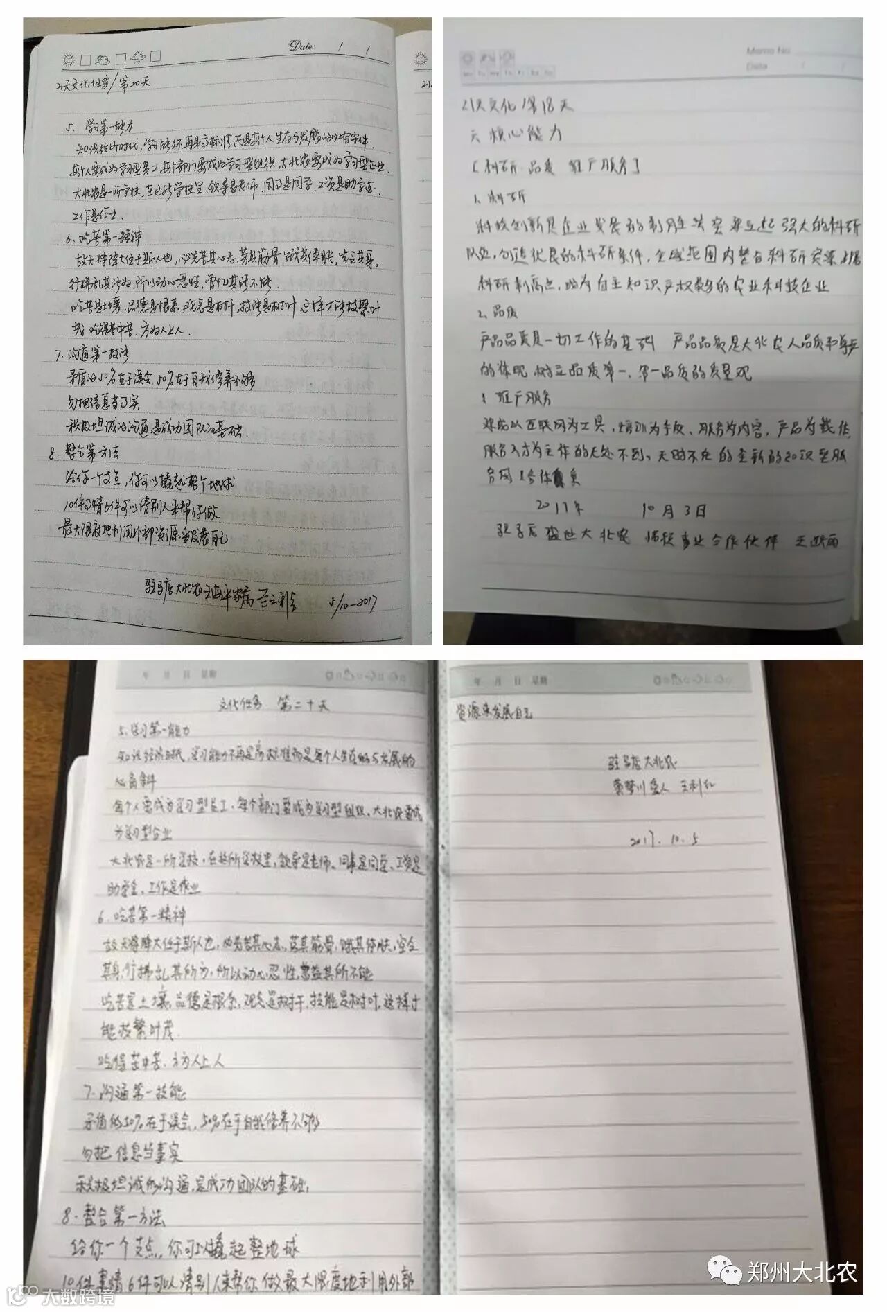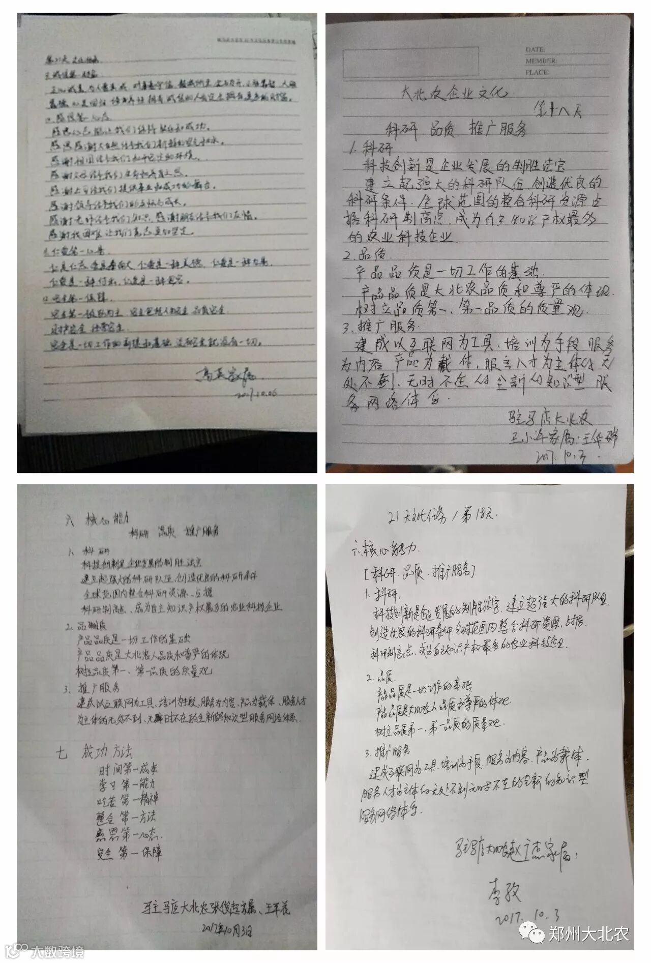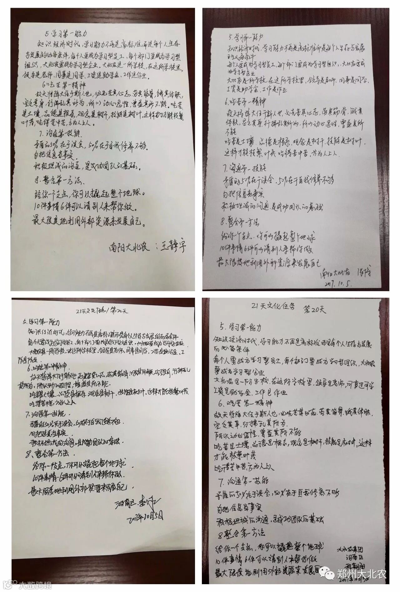全员深入开展学习践行企业文化,我们已经默默坚持了21天,相信,拼搏,等待,我们有始有终。争做卓越的大北农人,大家众志成城,决战决胜四季度,实现河南三年绩效规划开门红!