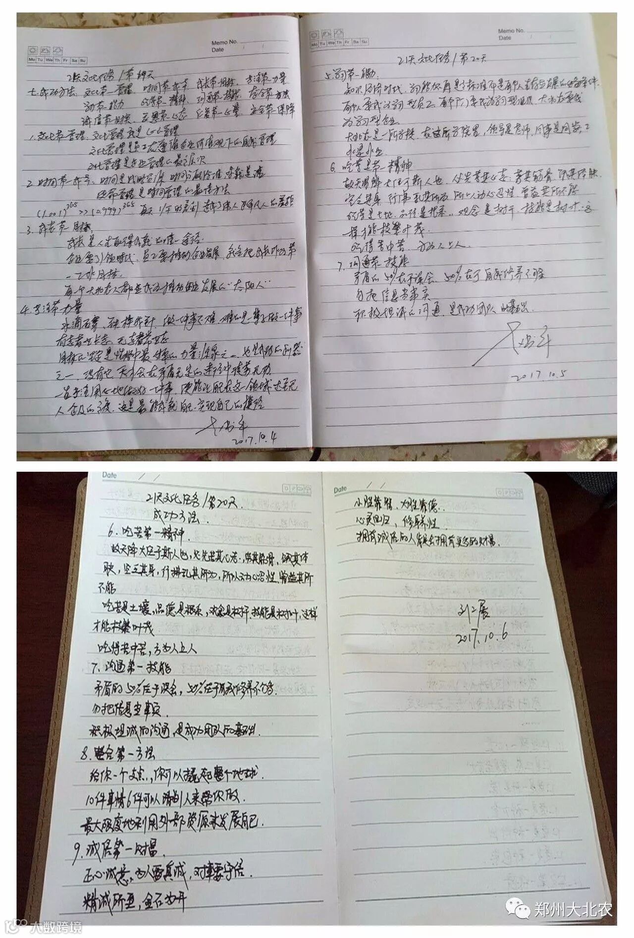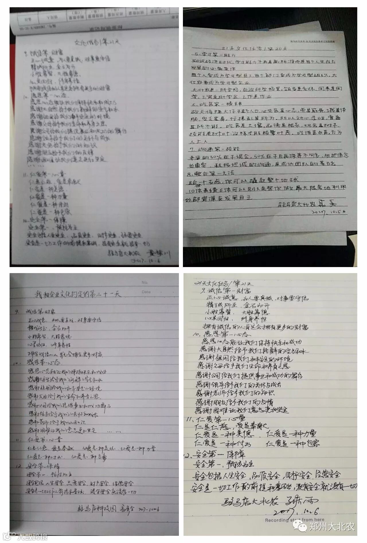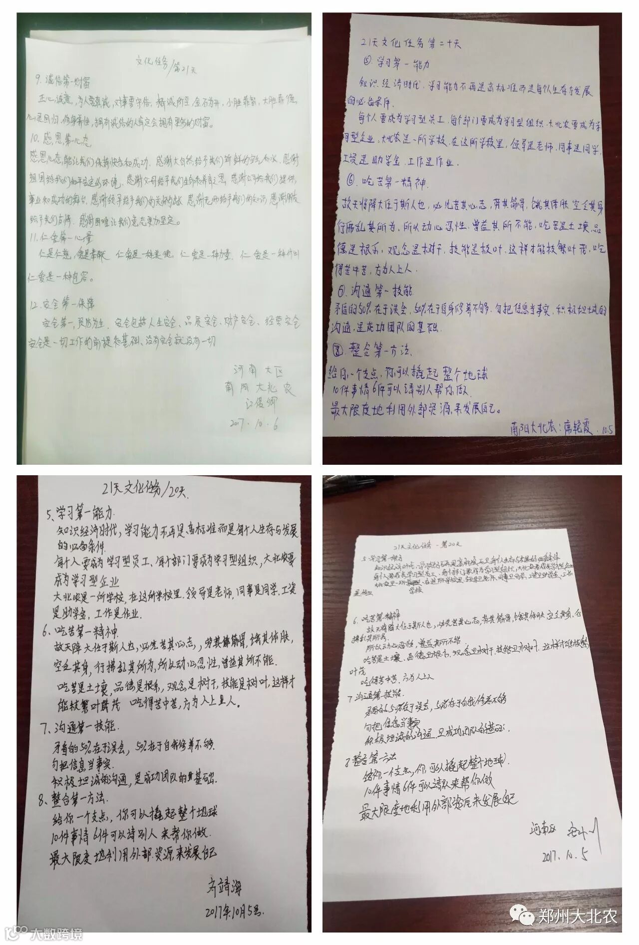 全员深入开展学习践行企业文化,我们已经默默坚持了21天,相信,拼搏,等待,我们有始有终。争做卓越的大北农人,大家众志成城,决战决胜四季度,实现河南三年绩效规划开门红!