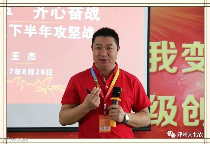 河南区总经理王杰老师以《锐意改革 齐心奋战 坚决打赢下半年攻坚战》为题进行分享,号召大家勇于变革,运用新思维、新模式、助推河南新辉煌,王老师对近期工作进行部署,要求建设河南最强最专业的技术服务体系队伍,用一流的服务推动猪场发展,齐心协力坚决打赢下半年攻坚战。