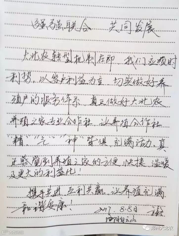 九层之台,起于垒土,千里之行,始于足下。此次会议事业合作伙伴达成了转型升级的共识,树立危机意识,深悟“平台思维、资源整合、转型升级、共同发展”精髓,打造高标准的平台 “大北农之家+养猪合作社”,践行“4.0版”发展模式。