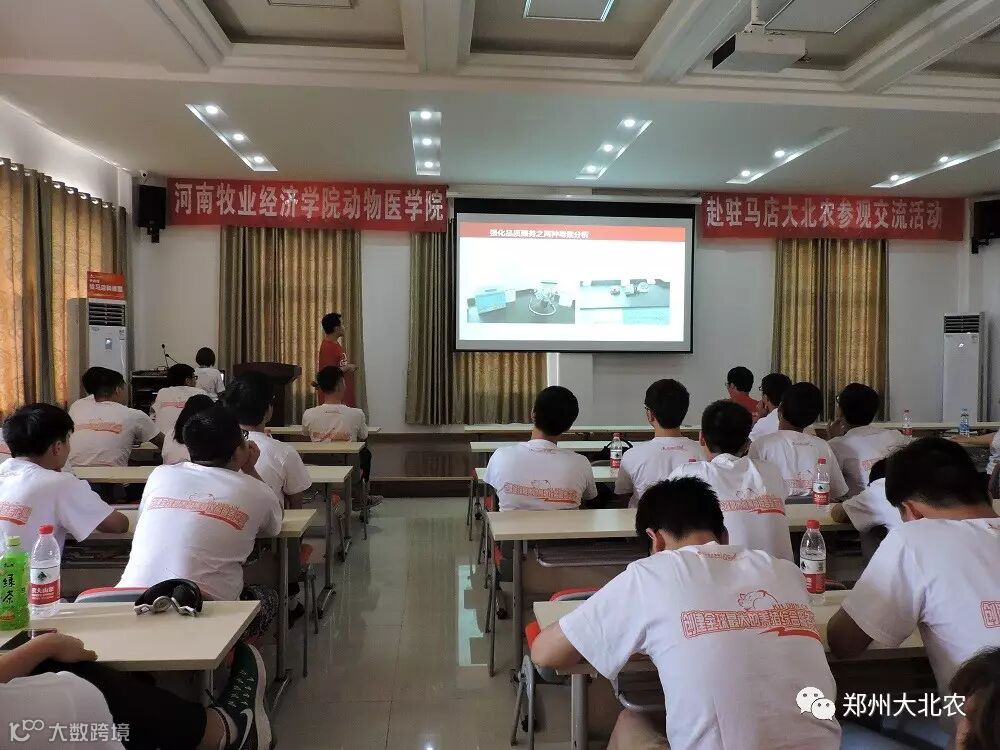 5月13日,河南牧业经济学院动物医学院大北农冠名班师生赴驻马店科技园参观交流,活动在创业人才中心的组织下顺利举行。河南牧业经济学院动物医学院党总支副书记张瑞春、办公室主任董青、辅导员聂丹、16级兽医普招班学生73人及大北农集团驻马店生产基地总经理黄梦川、市场技术服务总监谭玉领、创业人才部经理孔庆雨等参加了此次活动,郑州大北农创业人才部主管王玲玲老师主持本次活动。