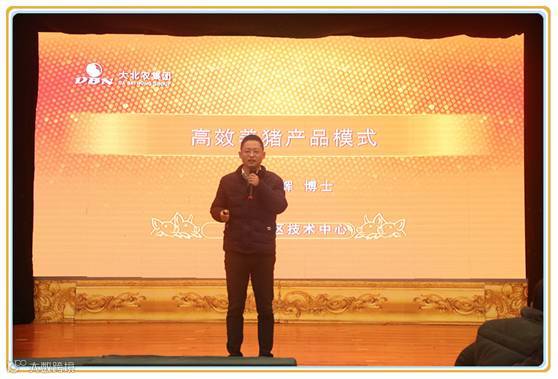 河南大区产品技术中心翟钦辉博士以《高效养猪产品模式》为题与大家进行交流,翟博士重点强调了新的产品战略和模式,通过详实的试验数据介绍了母教保产品的特性及价值,让大家对产品运用有了全新的认识。
