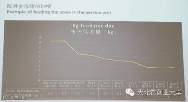 2、断奶第一天最少饲喂3公斤,2-4天增加饲喂次数,让母猪达到最大采食量。