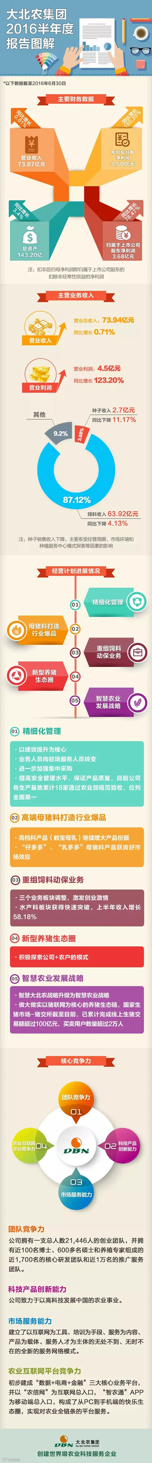 近日,大北农集团公布了2016年半年报,其中的每一个数字,每一句话,都透露出大北农2016年大发展的战略部署。可是半年报厚厚一大本,哪些是核心内容呢?今天小编就用一张图来给你划重点,拿着你的小本本赶紧来!