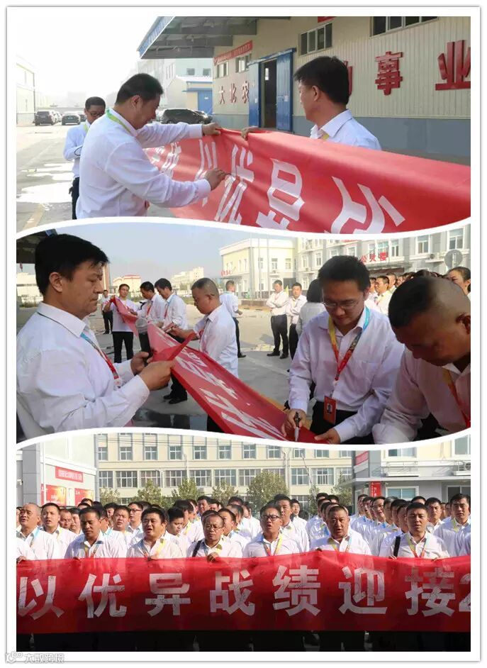目标既定,全力以赴。人心齐,泰山移。全员在“坚决打赢四季度攻坚战 以优异战绩迎接2017年”条幅上签字。 每位老师在条幅上签下自己的名字,留下庄严的承诺,用铮铮誓言为决战起航。最后齐唱《创业征途》并合影留念。