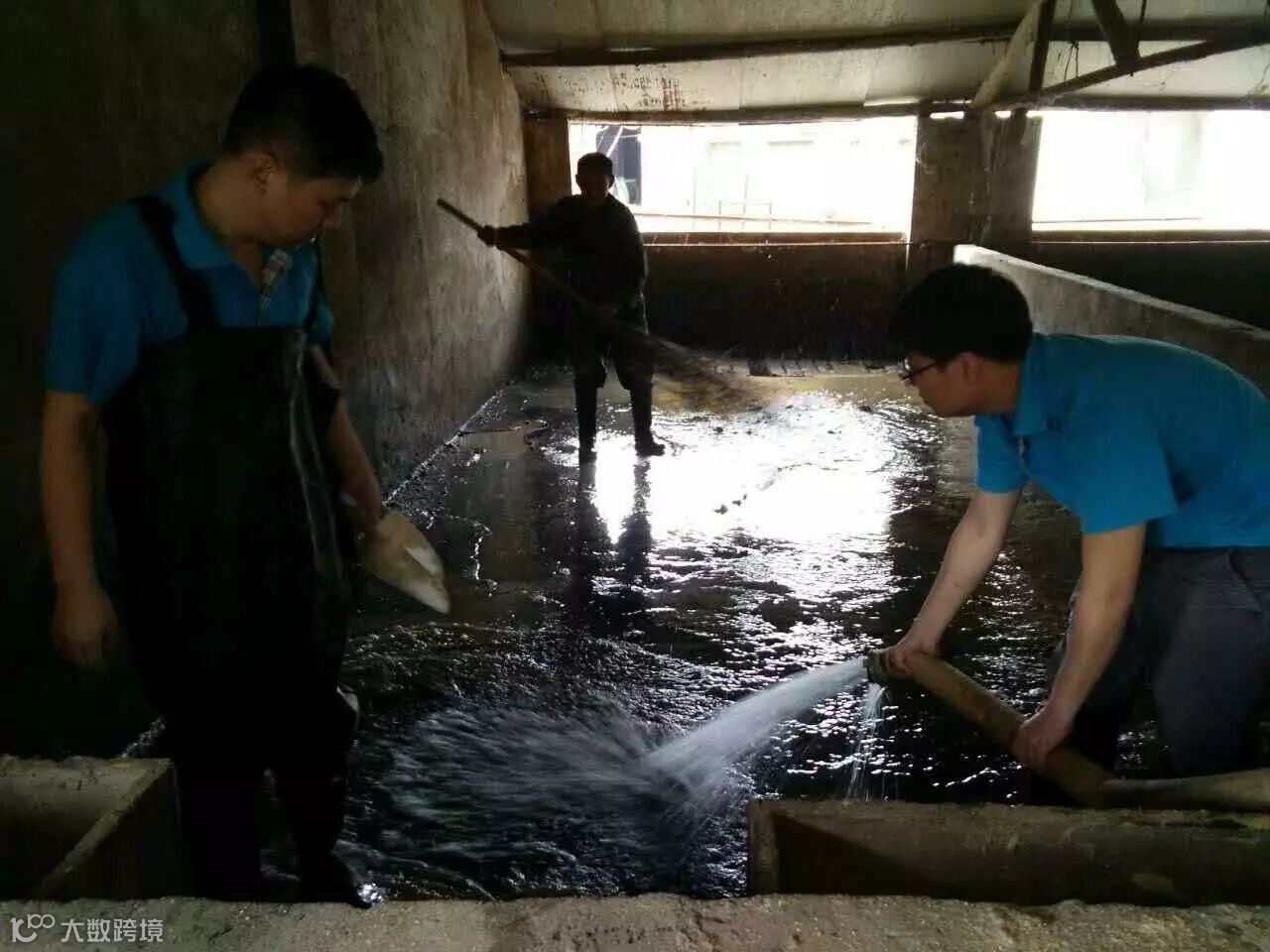 谭玉领老师、郭换周老师在孟津猪场进行清淤工作