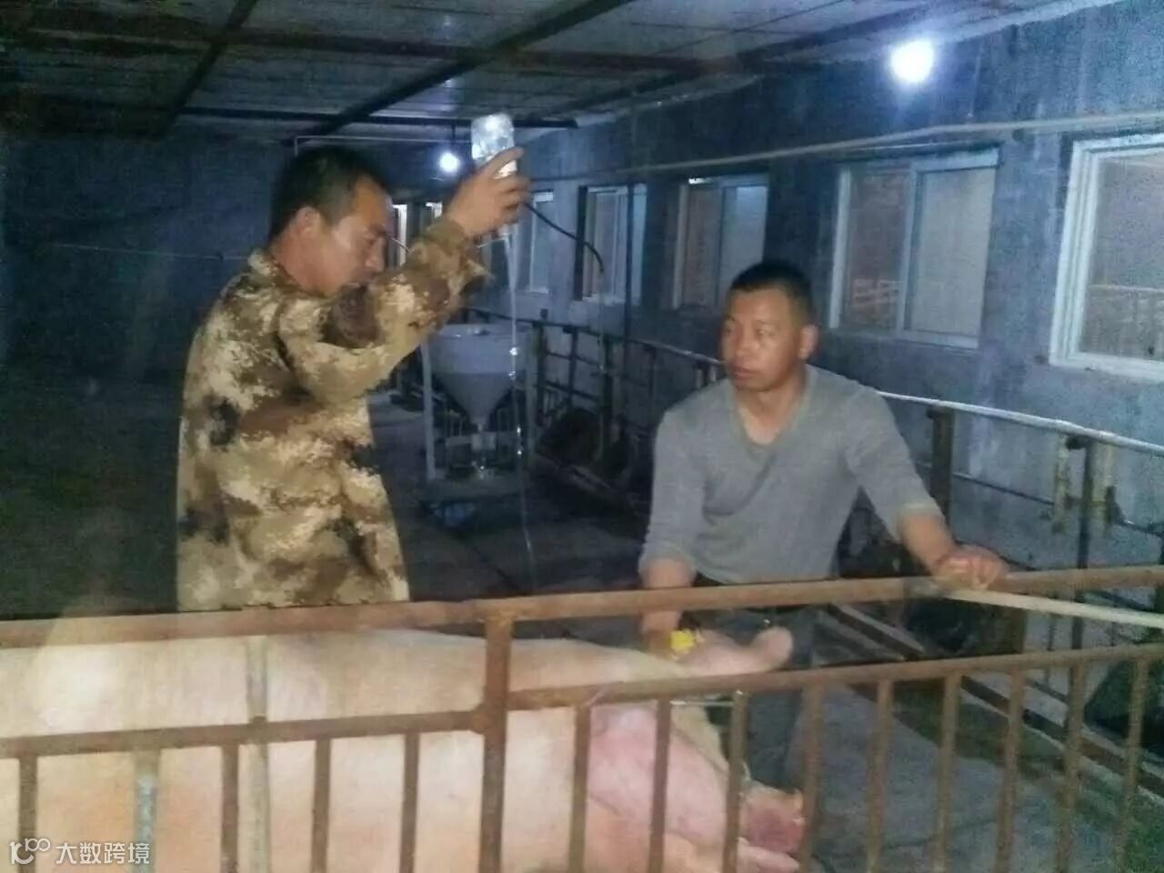 技术中心毕璐璐老师与冯建坤老师猪场服务