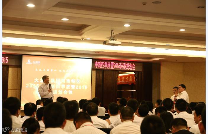 最后,邢尧老师以《冲刺60天 创造新奇迹》吹响暴风行动冲刺战役冲锋号。号召河南特区全体战将认清形势,承载使命,勇于担当,快速突破,实现绝处逢生,彻底转型。邢尧老师还为河南特区2016年进行规划设想,在销售业务、组织架构、产品、价格、渠道等方面谋求转型升级,实现河南特区新辉煌。