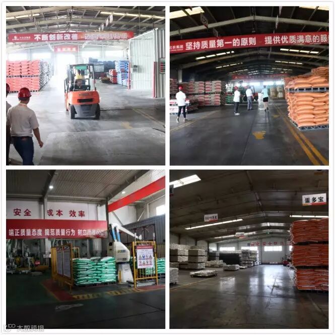 预混料、配合料生产车间及仓库作为园区最主要的部分之一保持着有序高效的生产工作。整个生产车间设备先进,安全生产、安全操作标准明确,仓库货品整齐摆放,生产过程中井然有序。