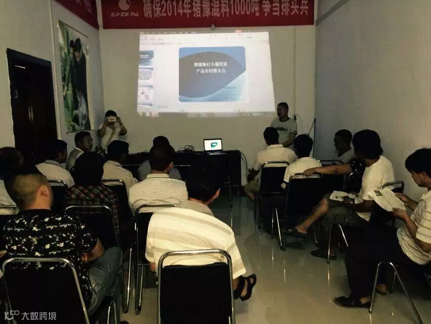 在服务中心二楼会议室,李艳娟经理及同事和大北农二十多位核心客户在一起就当前养猪行情,资金短缺及贷款办理为大北农核心客户在一起做了深切的沟通和交流。