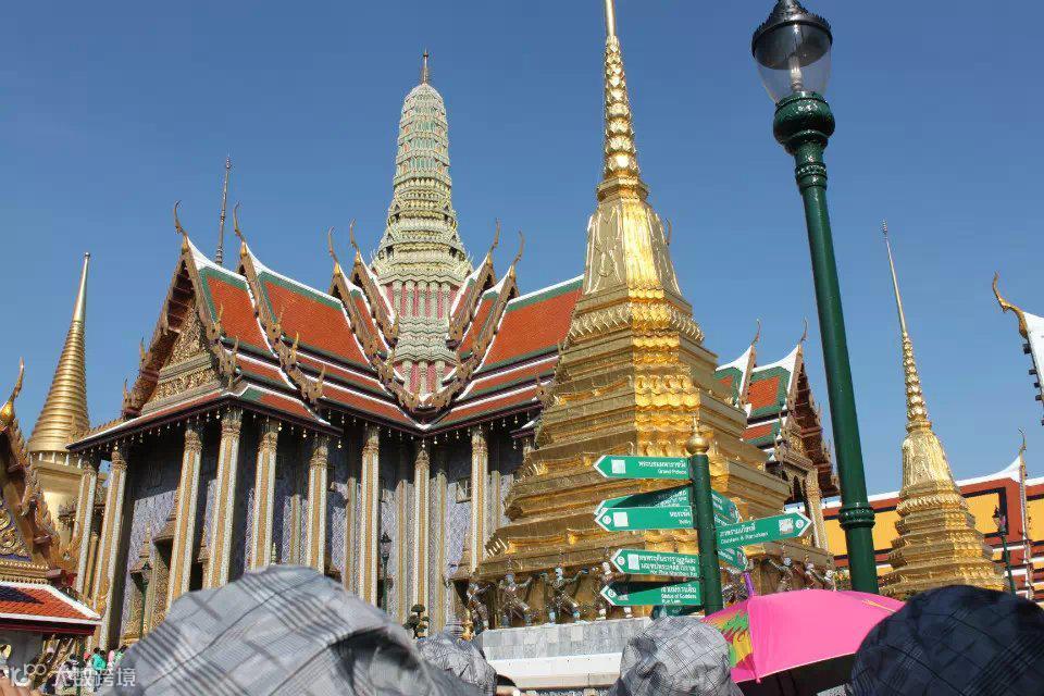踏入异国他乡的第一站就是就是金碧辉煌的大王宫与玉佛寺。往泰国旅游的人,几乎没有不往大王宫与玉佛寺的。我相信,每一个人只有走进泰国、到了曼谷,目睹了这里的寺庙,才能真正熟悉到什么才是“金碧辉煌”。尖角高耸的庙宇、佛塔,在阳光的照耀下,玲珑剔透、金玉璀璨,雕功细腻、精致美观的高大金漆佛像、石雕和绘有泰国传统图案的壁画,记载着与王国和佛教有关的故事。玉佛寺是泰国最大的寺庙,与大王宫毗邻而居。在这里参观,与国内不同的是,必须衣冠整洁、端庄,进进寺庙佛殿时,必须脱鞋,女士不可以穿超短裤、迷你裙、袒胸露背装和其他分歧适的衣服,以示对神圣的尊敬。不论是大王宫、玉佛寺,还是其他寺庙的庭院里,都是如茵碧草,多姿古树,还有很多修整得像盆景一样的花坛,令人赏心悦目。
